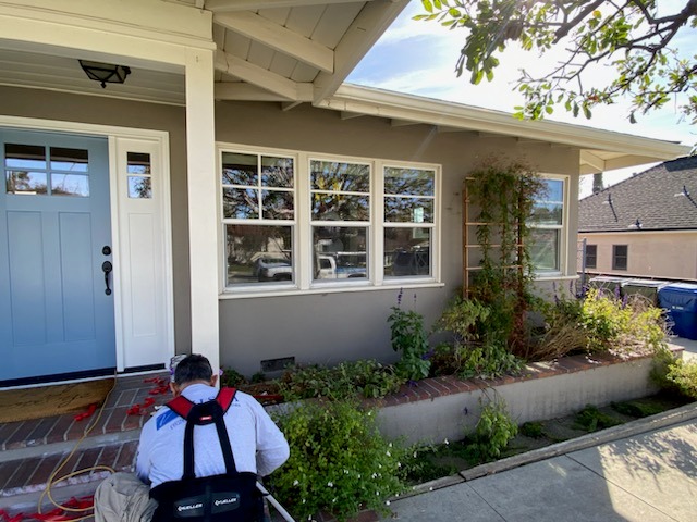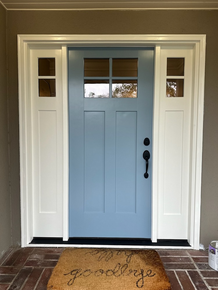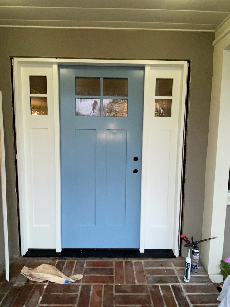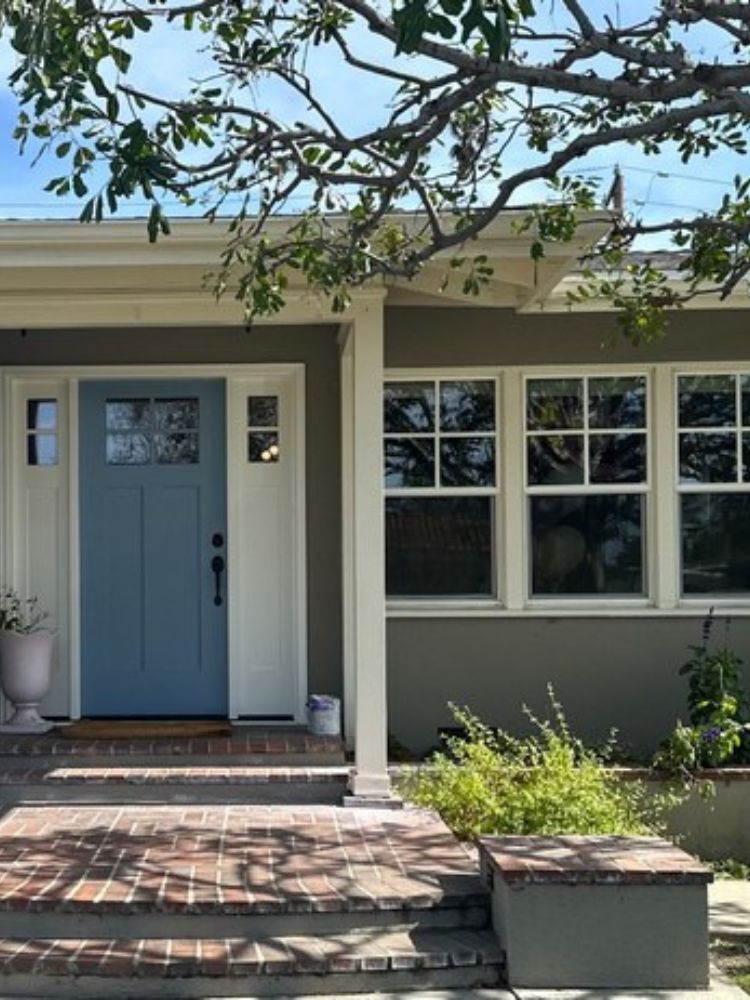 Take a look at this large-scale window and entry door transformation Vista Windows and Doors recently completed for a home in Monrovia, CA, enhancing both curb appeal and functionality. The project began with removing an outdated wood door with single-pane, non-tempered sidelite glass, which lacked energy efficiency and safety. In its place, we installed a custom-painted, two-tone fiberglass entry door in a striking Robin’s Egg Blue with crisp white trim, complete with two brand-new sidelites. This beautifully modernized the entrance while significantly improving security, insulation, and durability.