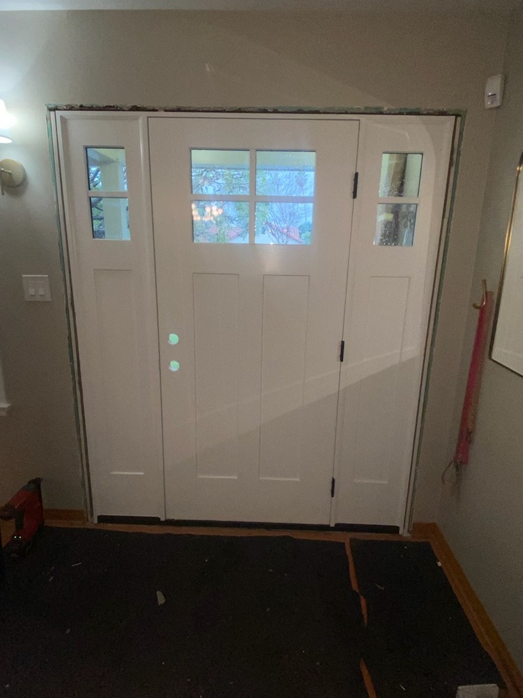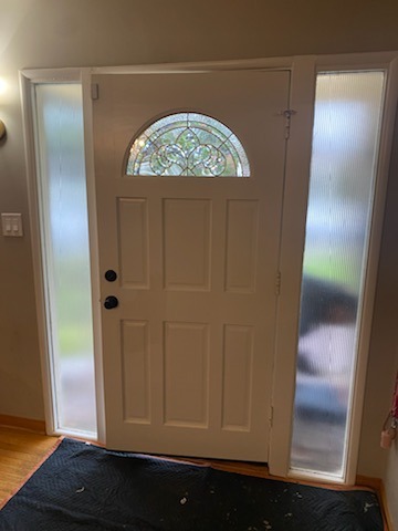 The fiberglass material of the new entry door is a game-changer for the home. Unlike traditional wood doors, fiberglass resists warping, cracking, and moisture damage, making it a low-maintenance and long-lasting solution. The new sidelites and glass panes at the top of the door allow for enhanced natural light without compromising privacy or insulation. With energy-efficient glass, this upgrade also helps regulate indoor temperatures, reducing heat loss and improving overall comfort.