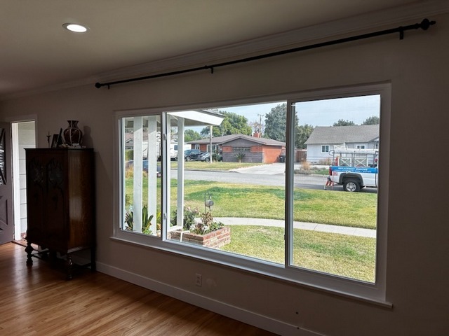 Vista Windows and Doors recently completed a transformative window replacement project in West Covina, CA. The home featured four wood, gridded double-hung windows with thin, clear glass and a dated steel XOX casement window with grids. These older windows were inefficient and detracted from the home’s overall aesthetic. Our team replaced them with sleek, white vinyl Anlin Panoramic windows, including four double-hung styles and a modern XOX slider.