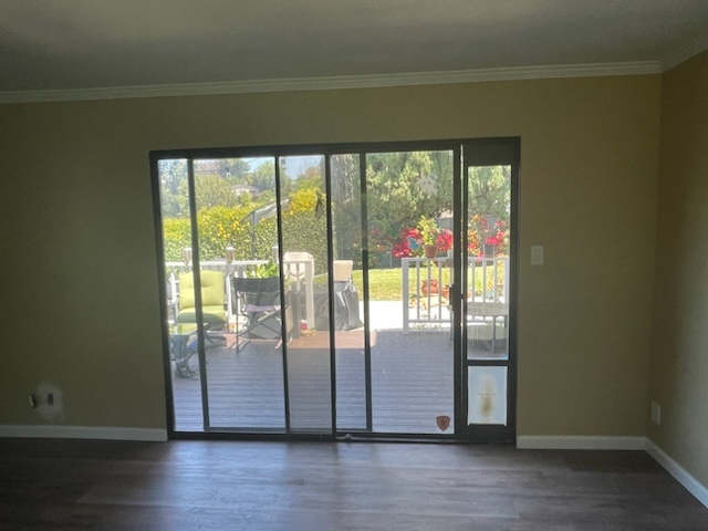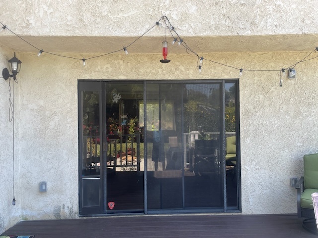 The complexity of expanding the doorway required precision, and the Vista team excelled in every aspect of the installation. The new Anlin Malibu door offers a broader, more inviting entrance and comes equipped with innovative features to enhance everyday living. The door’s side panels include screens to allow for natural ventilation without opening the main panels, perfect for enjoying fresh air on cooler days. Additionally, one of the panels features a built-in pet door, providing convenience for pet owners without compromising the door’s security or aesthetic integrity.