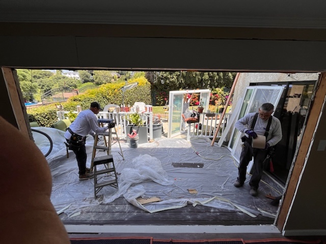 Take a look at this incredible French door replacement project in Los Angeles, CA. The centerpiece of this project was the installation of a stunning 10-foot wide four-panel Anlin Malibu patio door. Our skilled team expertly expanded the existing doorway to accommodate this expansive new door. This involved installing a new structural header, cutting the exterior stucco, and finishing with new drywall to ensure a seamless integration of the new system into the home’s architecture.