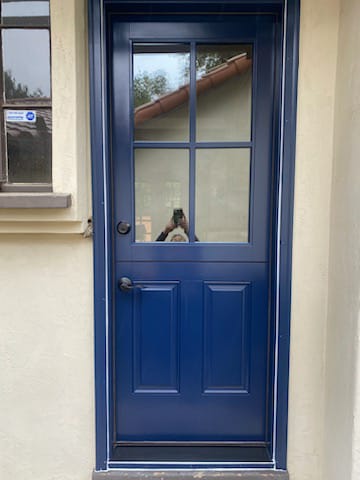 One of the amazing things about working with Vista Windows & Doors is that you can customize your door anyway you want. Look at this entry door and rear door replacement project we recently worked on in Alta, CA. The homeowners wanted to revitalize their home with a fresh and beautiful color. They selected this custom blue color that you just can’t find anywhere. Our color experts were able to create the color of their dreams and our team went quickly to work to getting their doors completed. Their entry doors they selected are made of fiberglass doors, known for their durability and strength. They are set with tempered low-emissivity coating for added natural light while still ensuring security.
