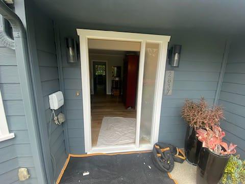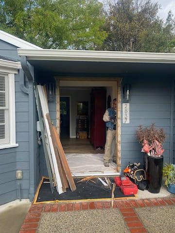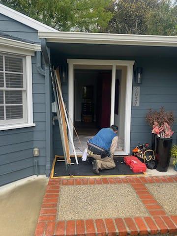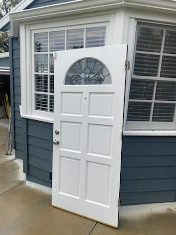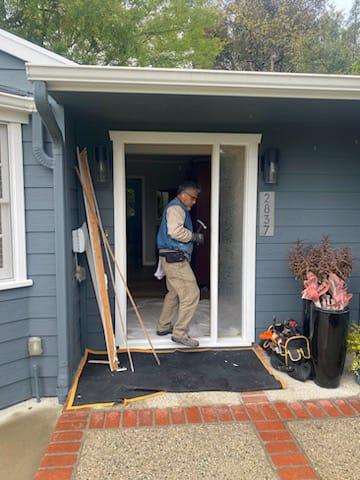 We changed out the door with leaded glass to a new fiberglass custom-painted entry door system with an attached sidelight. Fiberglass doors offer the advantage of requiring very little maintenance and having a long lifespan. As a result, you can enjoy their benefits and aesthetic appeal without being concerned about needing to replace them in the future. If you are considering replacing your front door, don’t hesitate to contact us at (626) 359-3600 or click the link provided for a complimentary estimate.
