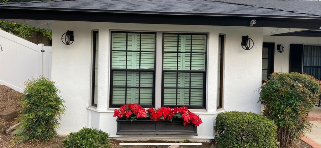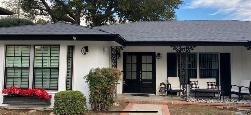Take a look at this window and double-door replacement our team completed in Glendora, CA! Our team installed custom black fiberglass double doors with satin etch glass and some single-hung custom black windows with grids. The black windows and doors match beautifully with the home’s outdoor décor completing the home’s modern look. When you replace your windows and doors, you enhance the look of your home while creating energy-efficient benefits. Your home will look good while reducing your energy costs by limiting the use of your HVAC system and allowing natural light and airflow into the home. When you are ready to replace your windows and doors, call us at (626) 359-3600 or click here for a free estimate!