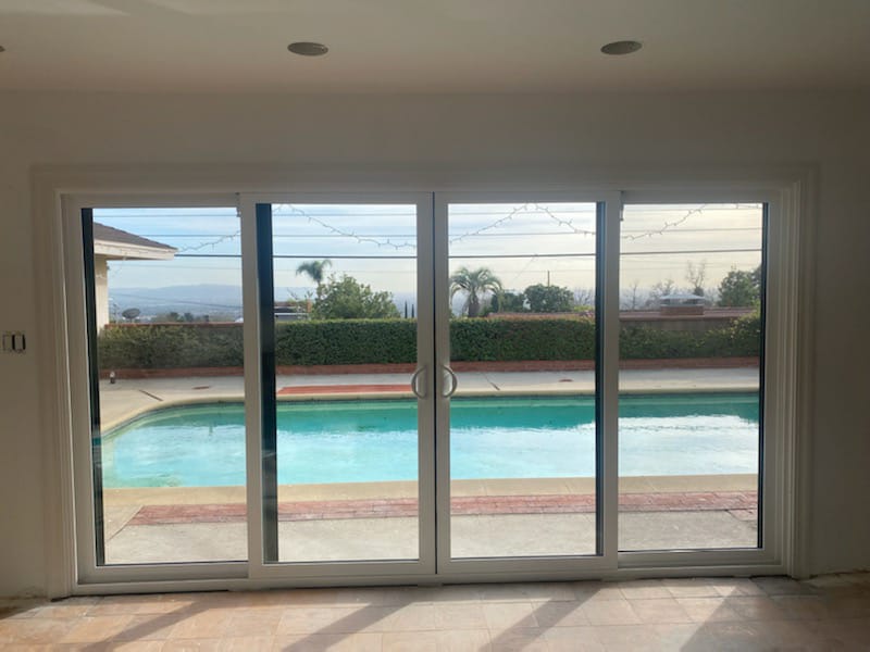 Take a look at the before and after photos of this four-panel patio door replacement our team completed. We removed a three-panel metal door with single-pane glass and replaced it with a sturdy four-panel patio door. The new Anlin Malibu door has a bronze exterior and white interior to match the home’s colors and multiple tempered panes and screens to increase safety. Installing a patio door with multiple panels increases the amount of natural lighting and ventilation in your home. You’ll reduce your heating and cooling use because the door seals tightly to keep your preferred temperatures inside and easily opens when you want a fresh outdoor breeze. If you are looking for a company you can trust to provide quality products and installations, Vista Windows and Doors is the company for you! Call us at (626) 359-3600 or click here to get started today!