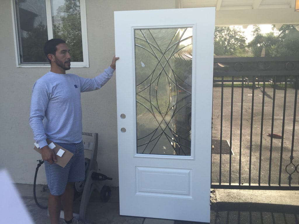 Check out this entry door replacement we completed in Glendora, CA. The homeowners wanted to upgrade their outdated entry doors with something more modern and inviting. These beautiful new doors are made of fiberglass. Fiberglass doors are excellent due to their longevity and durability features. As for the glass and color, these doors are set with leaded glass and were custom painted in semi-gloss white per the homeowner’s preference. If you’re looking to replace your existing door with something more durable and suited to your taste, call us at 626-359-3600 or click here to reach out today!
