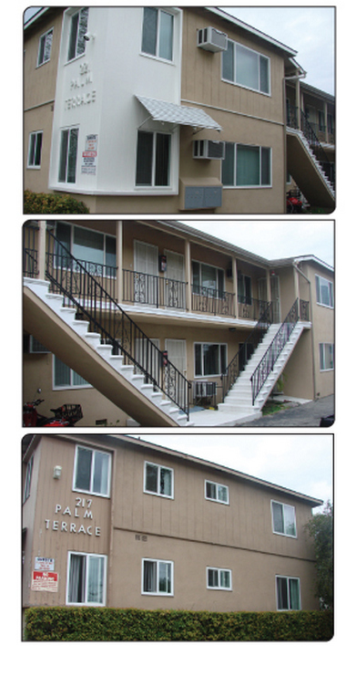 Palm Terrace duplex consisted of 12 units. Existing windows were aluminum casements with clear single pane glass and louver windows in bathrooms.