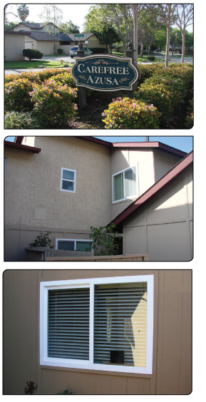 Carefree Azusa condos upgraded from their original single pane aluminum frame windows to Vista Regal Series vinyl windows and patio doors.