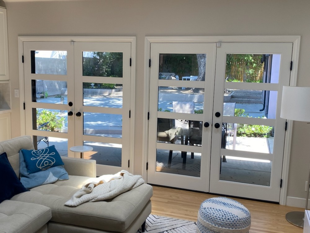 French doors aren’t just doors—they’re a statement. Recently, we installed two stunning fiberglass double French doors for a home in Pasadena, CA, each custom-painted with a smooth white finish that perfectly complements the home’s aesthetic. French doors add a classic, elegant look that instantly elevates any patio or backyard entrance. Their symmetrical design and glass panels invite natural light to flood in, creating a seamless connection between indoor and outdoor living spaces.